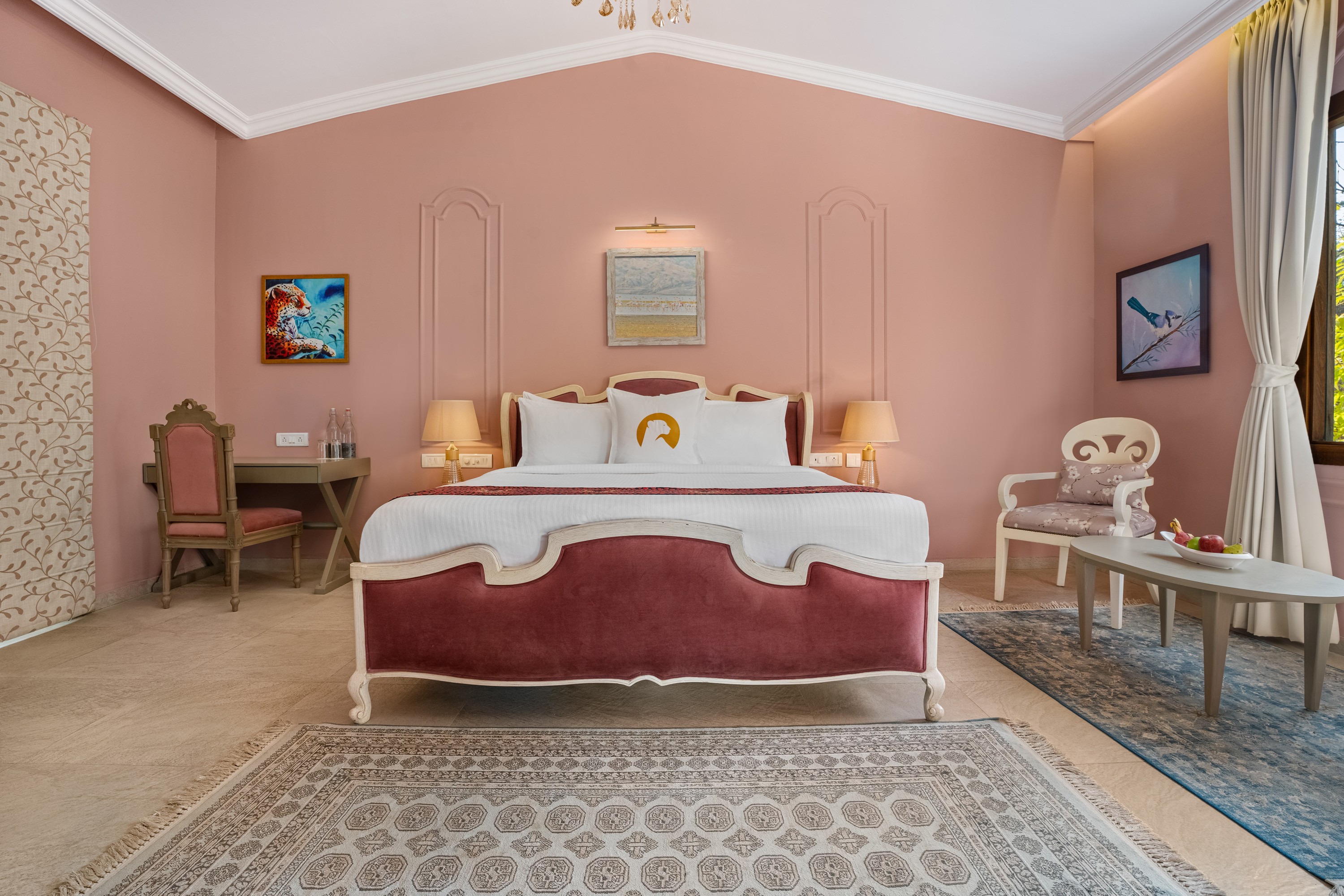 Dig in the luxury of a king-sized bed in a chalet where rustic charm meets indulgence in a grandeur style. These villas cover an area of approximately 550 sq. ft., with high ceilings featuring exquisite décor and contemporary furniture. These villas come with their private sit-out area and a swimming pool. Also, equipped with a 48” Smart TV and an ensuite open shower for your comfort. – King Bed – 700 sq.ft – Inclusive of Breakfast — 2 Adults